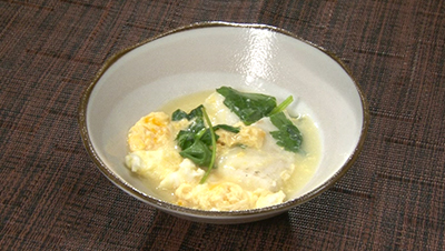 材料(4人分) 分量 ・ ヒラメ …1柵 ・ かつお出汁 …120cc ・ みりん …大さじ1/2 ・ 卵 …2個 ・ 塩 …少々 ・ 三ツ葉 …適量