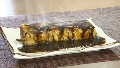 「手前に油をひき卵を加え寄せる」を繰り返す。(4回ほど) - ふたで形を整えて完成。