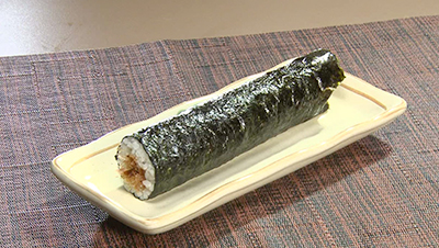 - 海苔の上にご飯を広げ、その上におかかを乗せる。