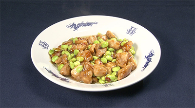 材料(4人分) 分量 ・ 枝豆(正味) …100g ・ 鶏肉 …200g ・ ニンニク(みじん切り) …1片 ・ 唐辛子(輪切り) …適量 ★ 醤油 …大さじ2 ★ 砂糖 …大さじ2 ★ 酢 …大さじ1 ★ 中華スープ …大さじ1 ★ 酒 …小さじ1 ★ オイスターソース …小さじ1 ・ サラダ油 …大さじ1 ・ 水溶き片栗粉 …大さじ2 ・ ごま油 …適量 ・ ラー油 …適量