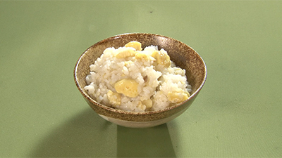 材料(4人分)※炊飯器を使用 分量 ・ 米 …2合 ・ 栗 …160g ・ 水 …360ml ・ 塩 …小さじ1弱 ・ 酒 …小さじ1 ・ 氷 …80g