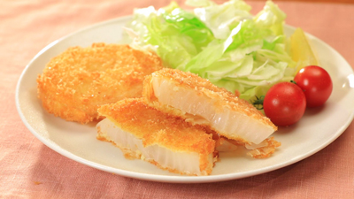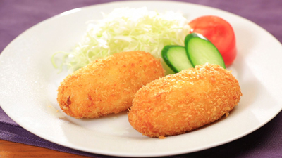 - 小麦粉、卵、パン粉の順につけ、170℃に熱した油で約4分揚げる。