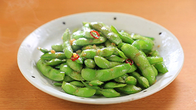 材料(2人分) 分量 ・ ゆで枝豆(さやつき) …200g ・ きざみにんにく …2片 ・ 塩 …小さじ1/2 ・ 鷹の爪(輪切り) …1本 ・ オリーブオイル …大さじ2