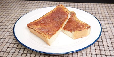 【作り方】- 食パンにほたての卵のおかず味噌を全体に塗る。