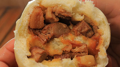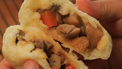 落としぶたと鍋ぶたをして水分が飛ぶまで20~30分煮込み粗熱をとる。 - 具材を生地で包む。