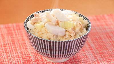 材料(3合分) 分量 ・ 米 …3合 ・ 里芋 …300g ・ 豚バラ肉 …120g ・ 長ネギ …1本 ・ しょうが(千切り) …10g ・ かつお昆布ダシ …500ml ・ 酒 …大さじ1 ・ しょう油 …大さじ1 ・ 塩 …小さじ1