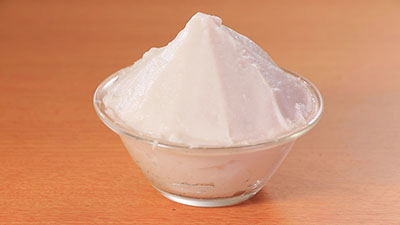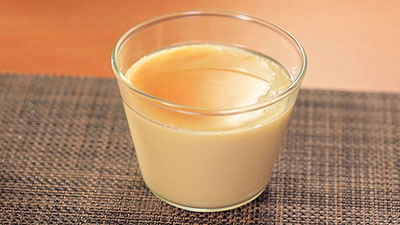 材料(4個分) 分量 ・ 里芋ペースト …200g ・ 卵 …2個 ・ 牛乳 …350mL ・ 砂糖 …50g ・ メープルシロップ …適量