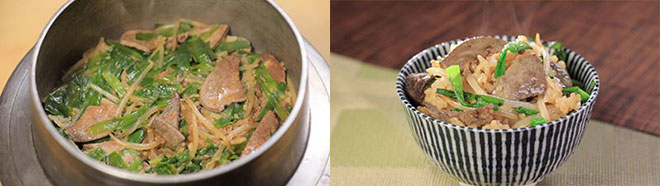 材料(4~6人分) 分量 ・ 米 …3合 ・ 鶏がらスープ …420mL ・ 氷 …120g <レバニラ> ・ 豚レバー …180g ・ 牛乳 …適量 ・ にら …1束(120g) ・ もやし …100g ・ きざみしょうが …小さじ1 ・ きざみニンニク …小さじ1/2 ・ しょう油 …大さじ3 ・ 砂糖 …小さじ1 ・ 酒 …大さじ2 ・ オイスターソース …小さじ2 ・ ごま油 …適量 <レバー下味用> ・ しょう油 …小さじ1 ・ 酒 …大さじ1 ・ 塩 …適量 ・ こしょう …適量 ・ 片栗粉 …小さじ1