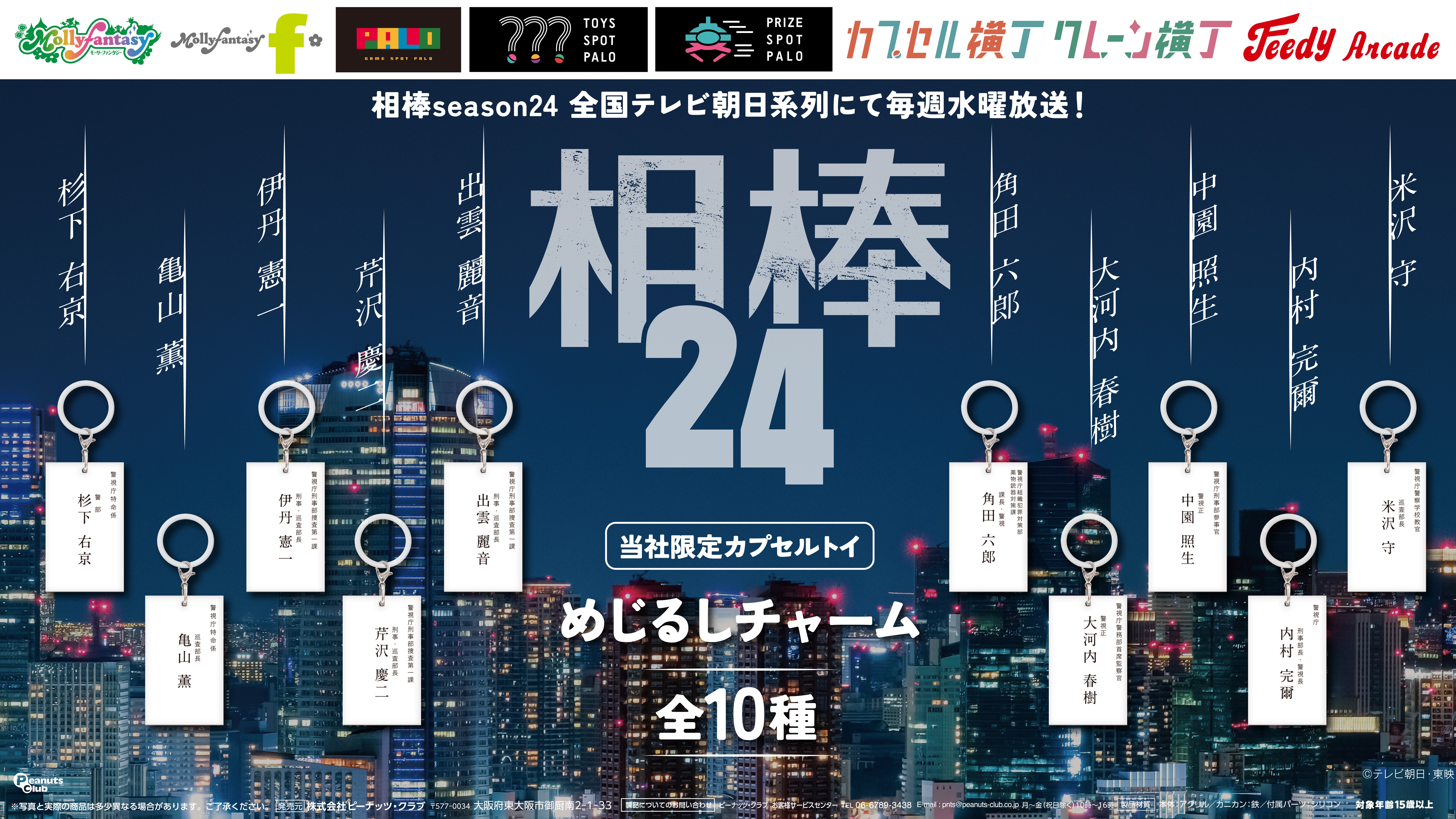 さらに、相棒各キャラクターの名刺をモチーフにしためじるしチャーム(全10種)のカプセルトイも全国のアミューズメント施設やカプセルトイ専門店で10月21日(火)一斉発売!
