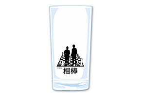 グラスⅡチェス盤に二人のシルエットが立っているような立体的なデザイン
