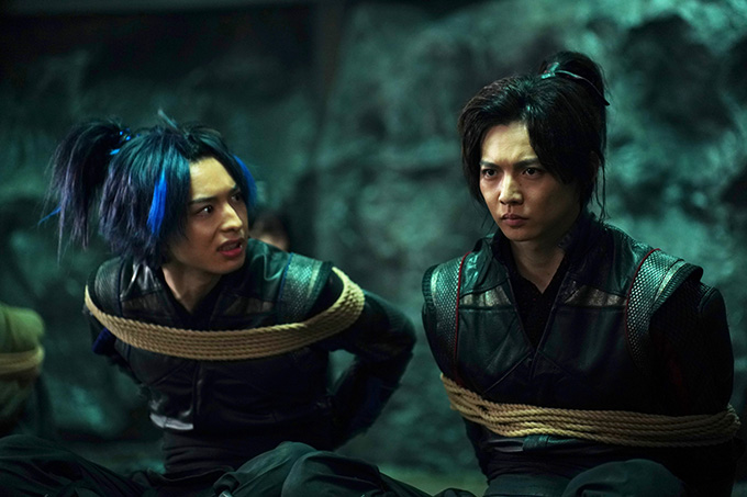 《霞谷七人衆》最後の刺客・夢堂典膳(山口祥行)のすさまじい忍術に圧倒され、捕らわれの身となった赤影(佐藤大樹)、青影(木村慧人)、黒影(山田愛奈)、仁助(木村風太)。ここでも、赤影と青影は激しく衝突し、二人の関係はついに決裂を迎えることに――。そんなとき、なぜか闇姫(山本千尋)が幻妖斎(忍成修吾)の手下として牢屋の前に現れる。実弟である仁助は、「どうして!?」と泣き叫ぶのだった。