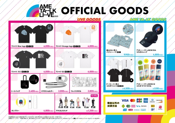 各公演2,500円/ 昼夜セット券4,500円▼テレ朝動画▼FANY Online Ticket・・・・・・・・・【イベント概要】・・・・・・・・・・■公演名:アメトーーク初ライーーブ■日程:2025年5月4日(日)■会場:EXシアター六本木■時間 (予定)【昼の部】12:30開演(11:30開場)・アメトーーク常連芸人・ザキヤマ&フジモンのパクリたいー1グランプリ【夜の部】17:00開演(16:00開場)・ナダル・アンビリバボー・芸能人のいらん情報もってる芸人*昼の部、夜の部で企画内容と出演者は異なります■チケット料金(全席指定・税込)