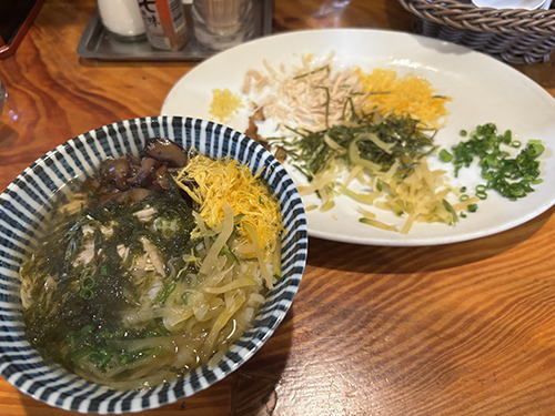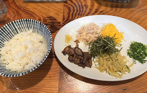 鹿児島の奄美地域を代表する郷土料理で、錦糸卵やほぐした鶏肉、干しシイタケなどをごはんの上に乗せてお茶漬けのようにして食べます。
