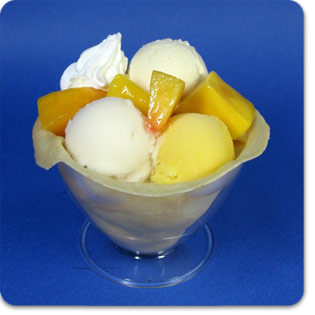 旬のフルーツである桃とマンゴーをたっぷりと使って、すっきりとした甘さのフローズンヨーグルトと合わせました!その他に桃とマンゴーのシャーベットも入っていて、豪華です!