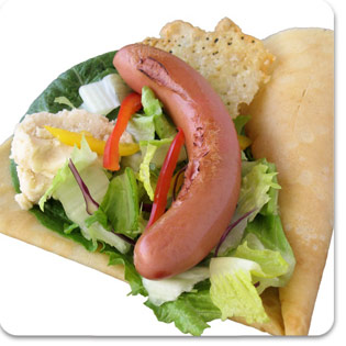 80グラムの大きなフランクフルトとたっぷりのサラダが入っていて、