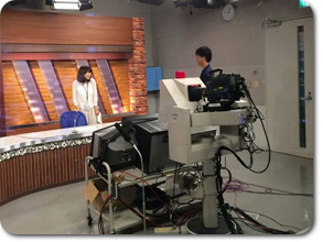 スタジオを覗いたり、カメラに向かってニュースを読んだり、