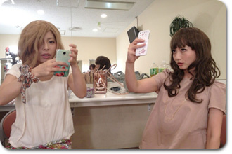 スタッフと一緒にメイクをし、