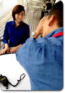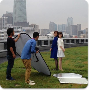 リクルートスーツで登場し、初めての撮影に臨みました。