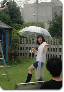 今回は傘を持ってホースで雨を降らしての撮影♪