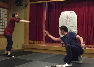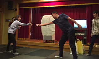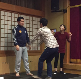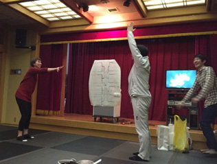 この画像は、菅原さんがどれだけ体が硬いのか検証しているところです。