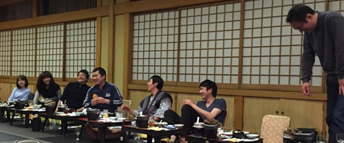 旅行会の宴会では、仕事に関する真剣な話をして、