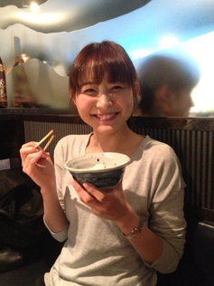 焼肉屋さんで、お茶碗を嬉しそうにもつ久冨アナ!幸せそう!!!(笑)