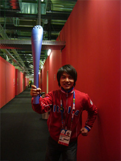 ![]() 国際放送センターの 廊下で聖火リレー |