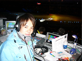 ![]() 開幕式放送席にて |