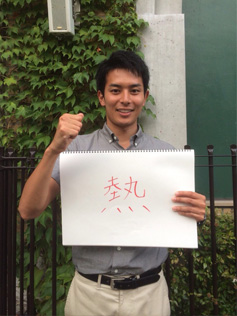 リポート中の山木くん、いい表情です