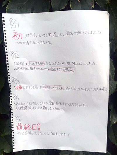 ✔滞在期間中、日々日記をつけてもらう