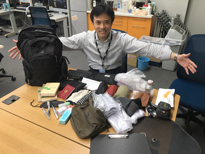 おととしにリポーターになってから、毎日この装備で出勤しているそうです。