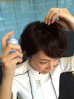 前髪が落ちてくることがあるので、ヘアスプレーを持ち歩いて自分で手直ししています。