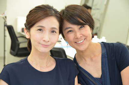 メイクルームで萩野アナと。