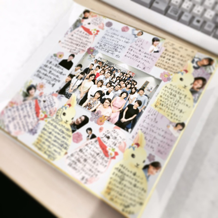 見開き両面ぎっしりに佐分さんへのメッセージと写真が貼ってあります。