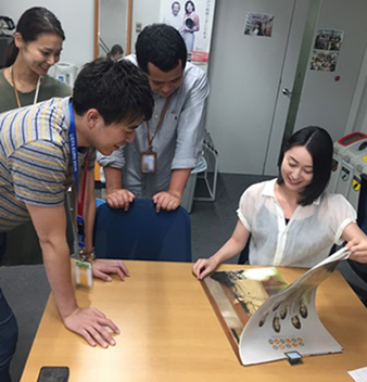 どうしても真顔になってしまい、先輩方に表情、ポーズなど手取り足取り教えてもらいました。