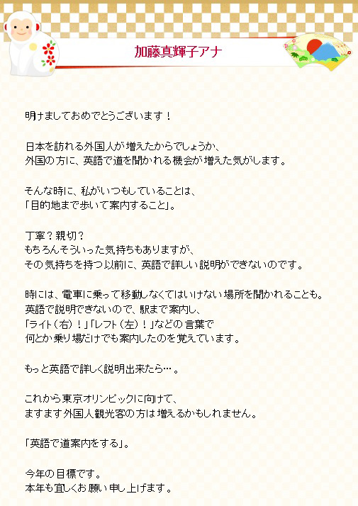 来年こそバリバリと英語を話す加藤アナが見てみたいです!