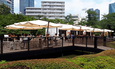 毛利庭園には、期間限定の特別な水上テラスが登場。