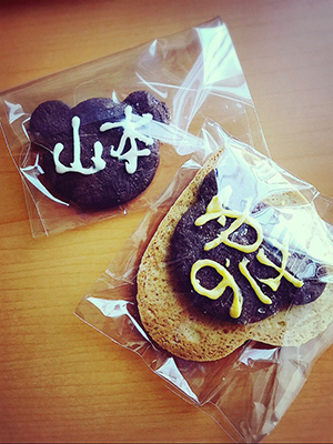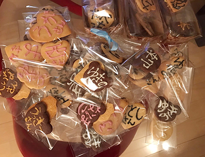 クッキーに「山本」や「ゆきの」と書いてあります。