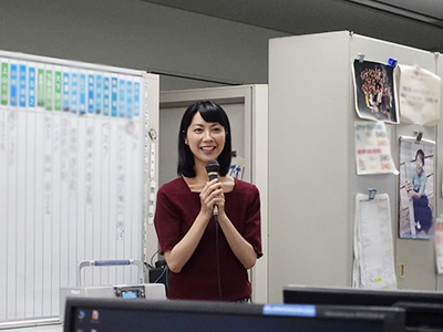 田原アナ、市川アナを囲んで話をしたり、部員同士で話をしたりと、