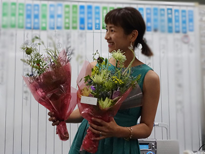 ニュース後には同じくアナウンス部を離れる部長から花束が贈られました。