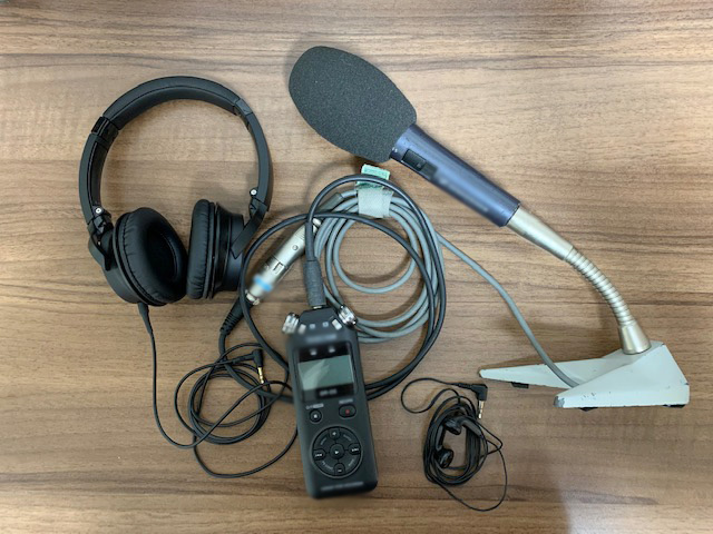 ヘッドフォンで自分のナレーションの音を聞いていました。