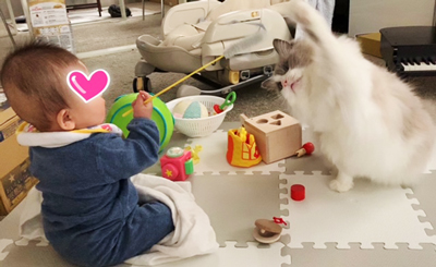 息子さんとフィーちゃんが仲良くなった瞬間ですね!