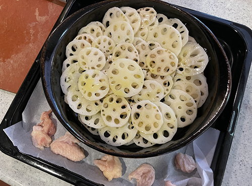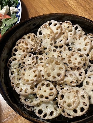 蓮根のオーブン焼き、表面が少しカリッとしていて美味しそうです!