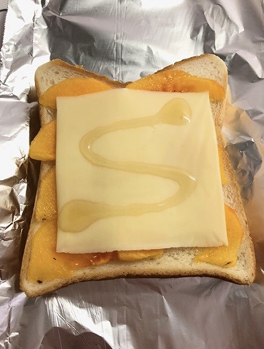 今回はチーズも乗せて、少しばかりのハチミツを……