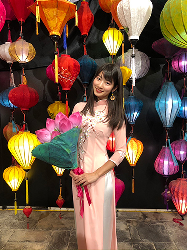 大学生の時のベトナム旅行。アオザイもメイクも暖色系です