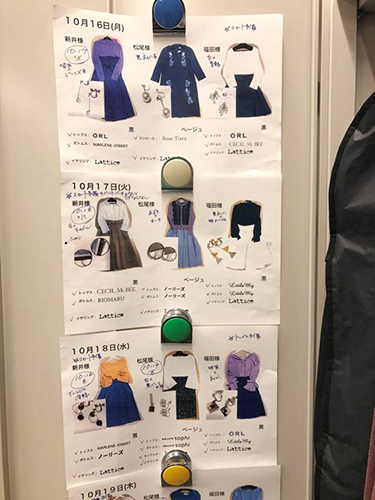 曜日ごとにどの服を着るか、スタイリストの方によって事前に決められているんです。