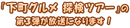 『下町グルメ 探検ツアー』の第3弾が放送になります!