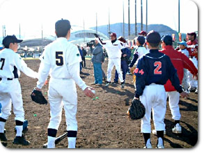 そして試合後には、近くの小中学生を集めての野球教室が行われました。