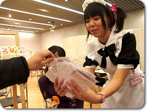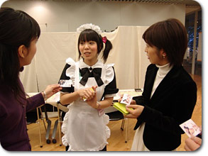 久保田)今日も大盛況ですねぇ! 椿)ありがとうございます。OPEN初日の14日には200人を超すご主人様、お嬢様がお帰りになりました。(一同爆笑) 中村)そんなにいらっしゃったんですか?びっくりだあ。 |