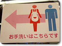 さてさて、ちょっと化粧室へ、と思った矢島の目に飛び込んできたのはこんな特殊な標識…。 |